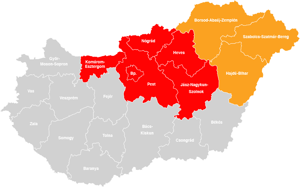 Szürke - 5 éven belül ezeket a megyéket is szeretnénk elérni.